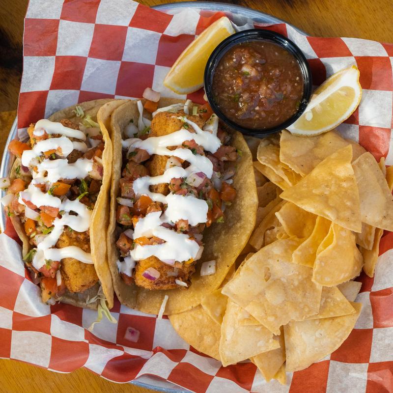 So yer boat's broken & ya can't fish...come on in! Yer choice of the Bub's Fish Fry or grilled featured fish with lime crema, pico de gallo & cabbage.