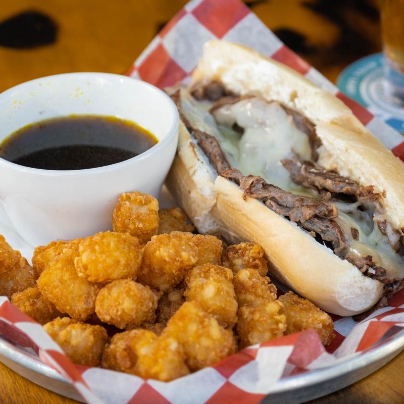 Bub’s shaved steak with Swiss cheese, creamy Horseradish (with a kick) on a French roll. It’s actually our delicious American bread, but it sounds fancy...We believe the Au Jus makes the difference, and ours is Delicieux!!! (Damn good).
